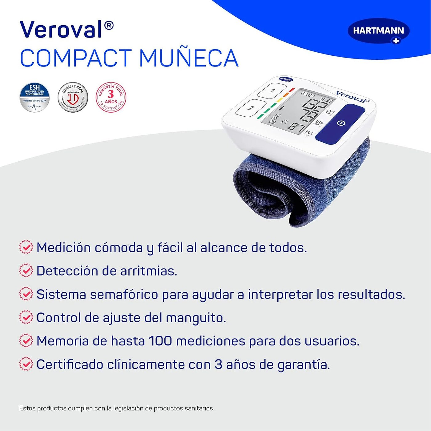 Das Veroval Compact Handgelenk-Blutdruckmessgerät ist ein medizinisches Gerät zur einfachen und automatischen Messung des systolischen und diastolischen Blutdrucks sowie der Pulsfrequenz bei Erwachsenen. Seine Comfort Air-Technologie garantiert ein individuelles Aufpumpen und sorgt so ab der ersten Anwendung für eine komfortable und präzise Messung. Darüber hinaus verfügt es über eine Arrhythmie-Erkennung, wodurch unregelmäßiger Herzschlag während der Messung identifiziert werden kann. Auf dem gut lesbaren LCD-Bildschirm werden die Ergebnisse klar und deutlich angezeigt, sodass sie leicht zu interpretieren sind. Das Gerät speichert bis zu 100 Messungen für zwei Benutzer und ermöglicht so eine detaillierte Überwachung des Blutdrucks im Laufe der Zeit. Sein kompaktes und leichtes Design macht es ideal für den Einsatz zu Hause und auf Reisen.