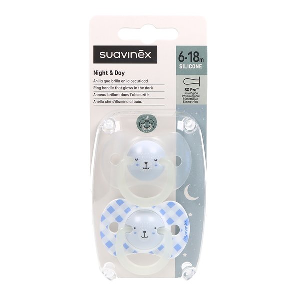 Der Suavinex Fusion Schnuller mit physiologischem Silikonsauger ist für Babys von 4 bis 18 Monaten geeignet. Sein Design umfasst einen kleinen, innovativen Ring, der die Kontaktfläche mit der Haut des Babys minimiert, die Belüftung fördert und Reizungen reduziert. Der schmalere, flachere physiologische Sauger sorgt für einen korrekten Sitz des Schnullers im Mund und übt minimalen Druck auf den Gaumen aus. Er wird im 2er-Pack geliefert.