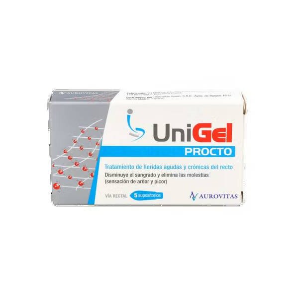UniGel Procto Rektalzäpfchen zur Linderung von Beschwerden im Rektalbereich. Sie sind einfach anzuwenden und weisen keine bekannten Nebenwirkungen auf. Sie sind sicher für schwangere und stillende Frauen.PRODUKTZUSAMMENSETZUNG