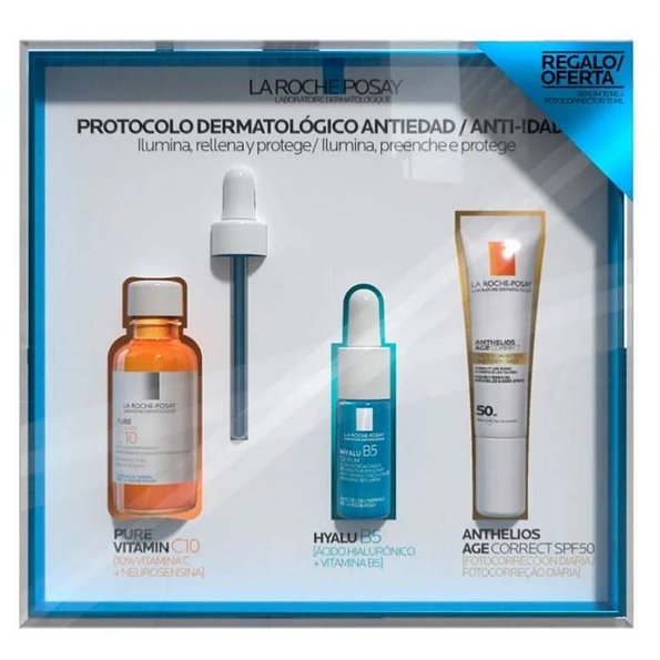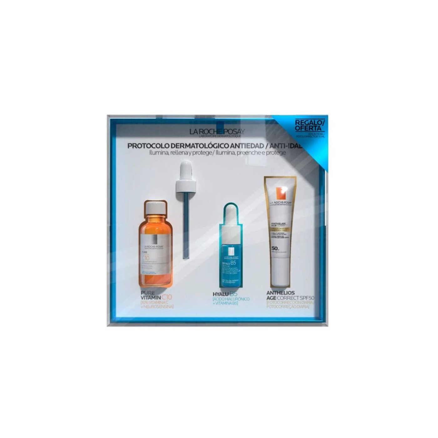 Diese Promo-Box mit reinem Vitamin C10 30 ml, Hyalu B5 Serum 10 ml und Anthelios Age Correct 15 ml vereint die Vorteile von Vitamin C, Hyaluronsäure und fortschrittlichem Sonnenschutz für strahlende und verjüngte Haut.