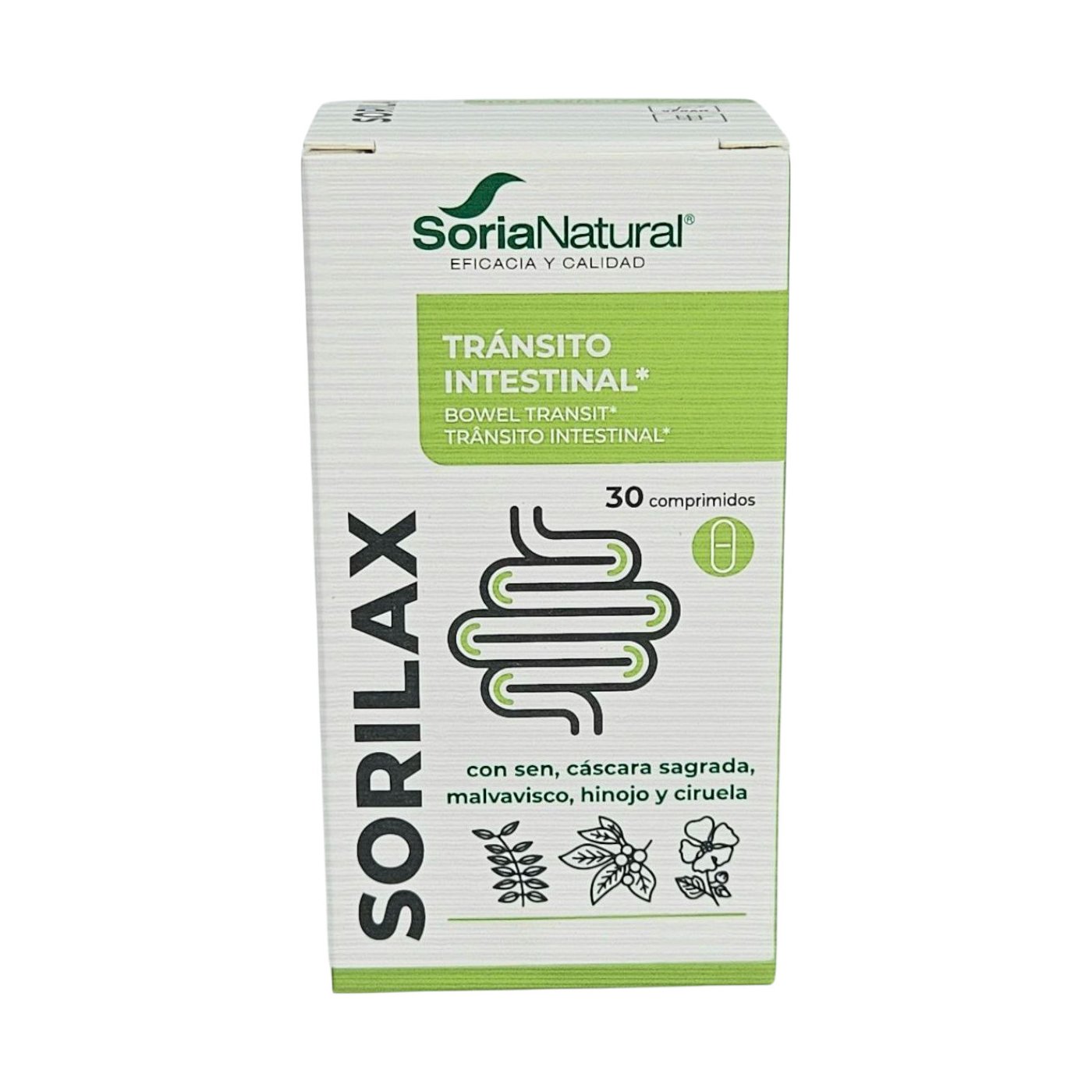 Sorilax is a plant-based food supplement designed to support intestinal transit during occasional constipation. Its formula combines plants traditionally used to stimulate intestinal motility, soften stools, and promote more comfortable bowel movements. It comes in a pack of 30 tablets, suitable for occasional use.