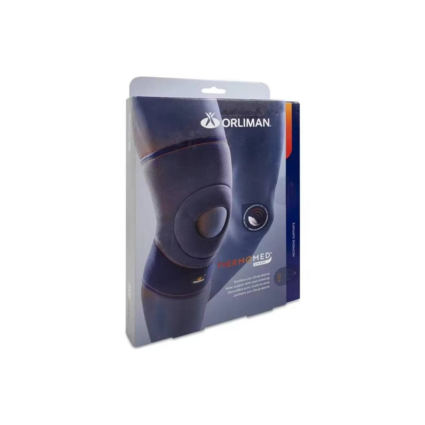 Orliman 4101 T3 knee brace made of 4.5 mm neoprene with a patella opening, thermocompression, and lateral stabilization. Ideal for sports support, osteoarthritis, and rehabilitation.