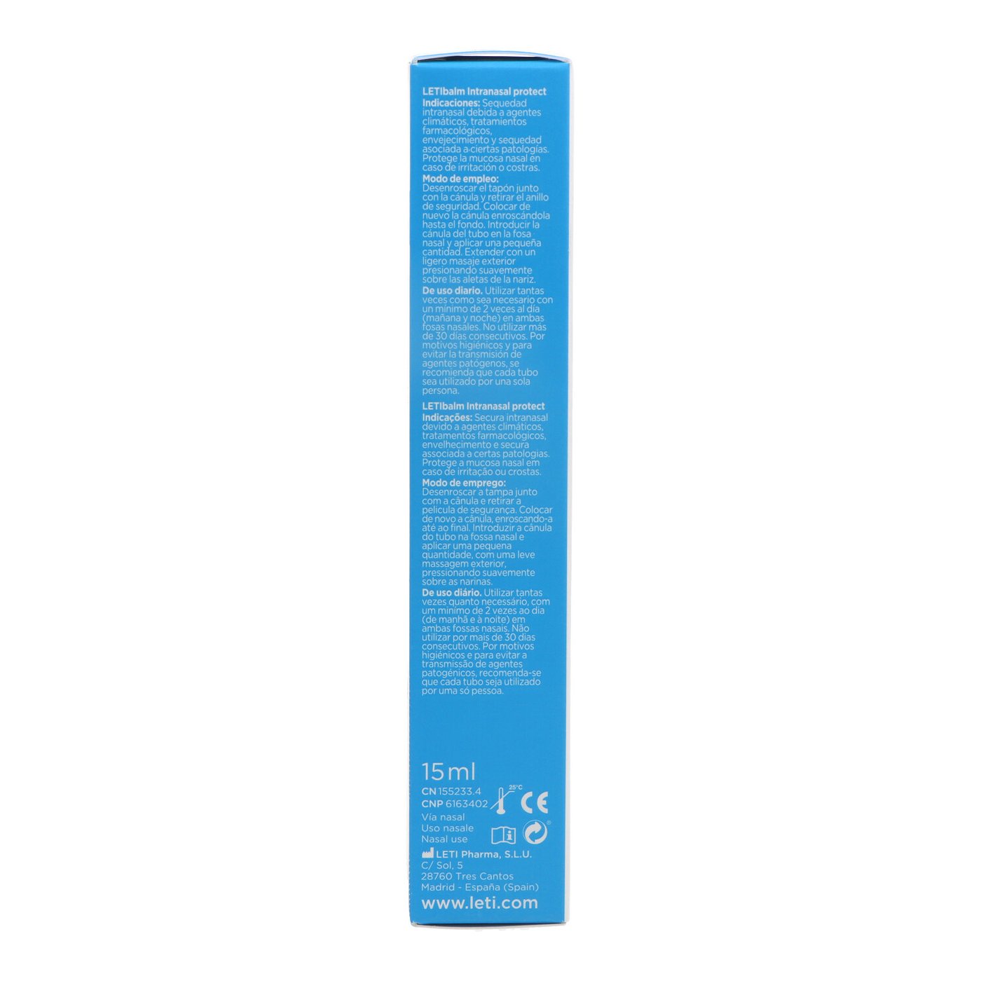 Letibalm Intranasal is an effective solution for the protection and regeneration of the nasal mucosa, especially in times of low temperatures or in dry environments. Formulated by the Leti brand, it is a highly valued product to prevent and relieve the most common symptoms of nasal dryness, helping to avoid irritation, fissures and any other discomfort related to dryness in the nose.
