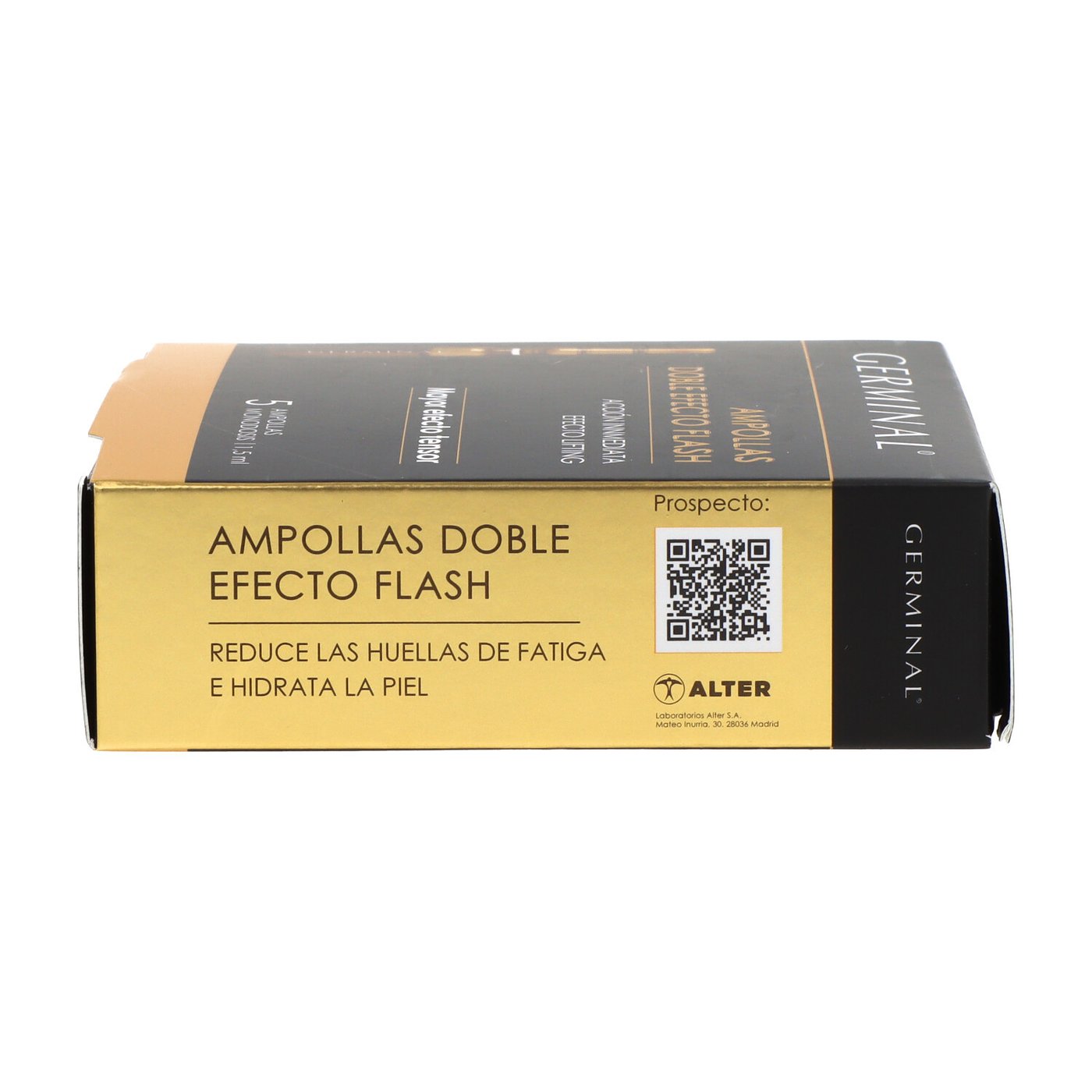 Germinal Immediate Action Double Flash Effect are ampoules that provide a powerful dose of energy to your skin, eliminating signs of fatigue and stress to leave it fresh, radiant and full of life. This revolutionary formula contains a blend of active ingredients that work in synergy to provide visible, long-lasting results, perfect for special occasions or for times when your skin needs extra care.