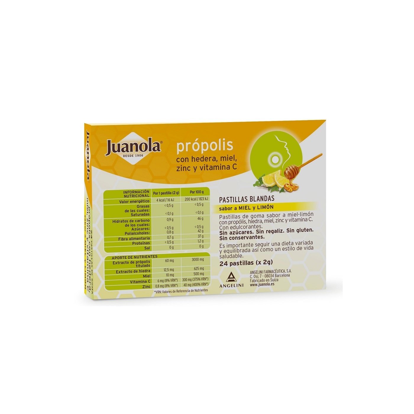 Juanola Propolis with Hedera, Honey, Zinc and Vitamin C Honey and Lemon Flavor 24 Soft Tablets