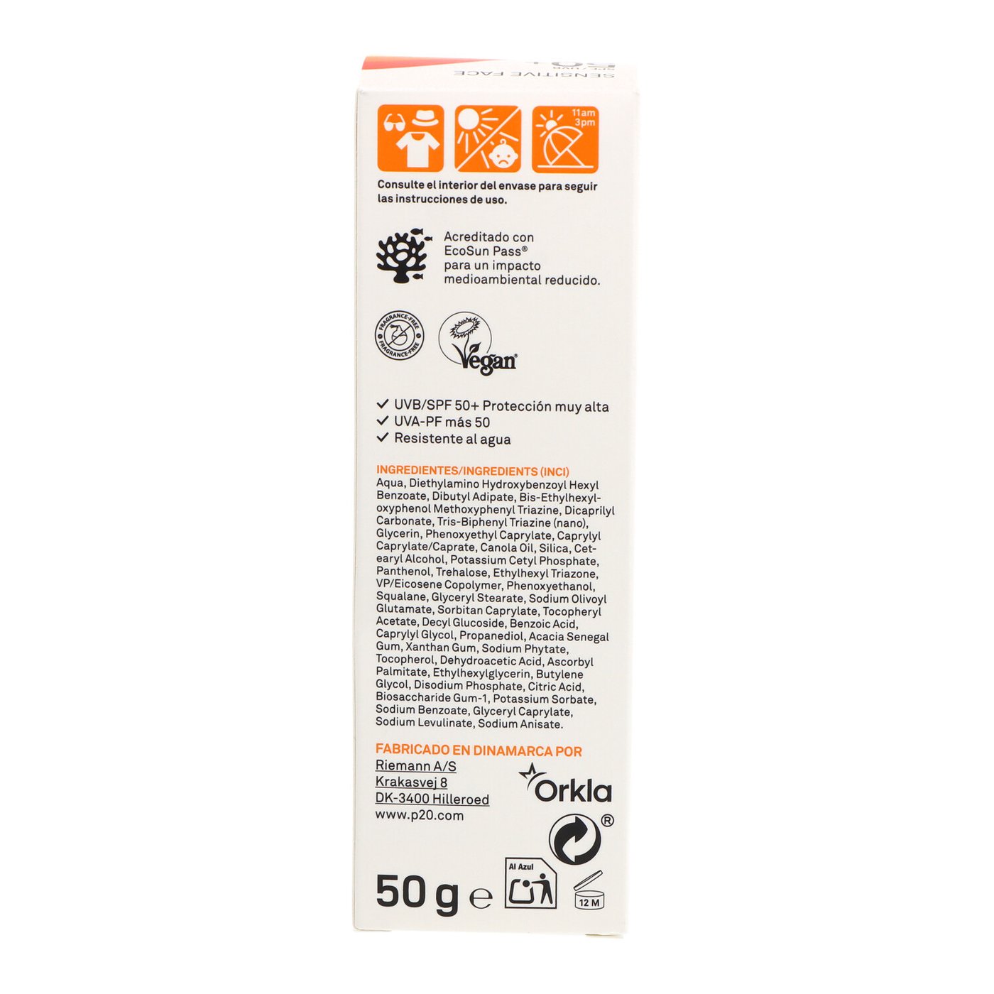 P20 Face Sensitive SPF50+ es un protector solar facial formulado especialmente para pieles sensibles. Su avanzada tecnología proporciona una defensa duradera contra la radiación UVA y UVB, ayudando a prevenir el daño solar y el envejecimiento cutáneo. Enriquecido con antioxidantes como las vitaminas C y E, protege contra los radicales libres mientras mantiene la piel hidratada. Su textura ligera se absorbe rápidamente sin dejar sensación grasa, siendo ideal para aplicar antes del maquillaje. Además, es resistente al agua y no contiene perfumes, minimizando el riesgo de irritación.