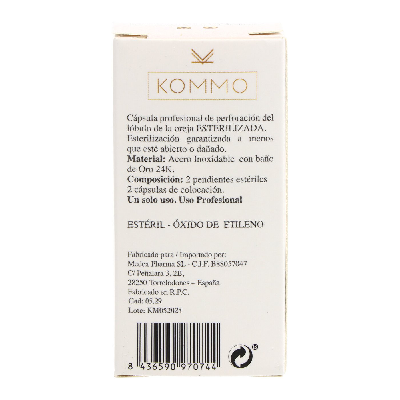 - Inserte el pendiente en el lóbulo de la oreja.