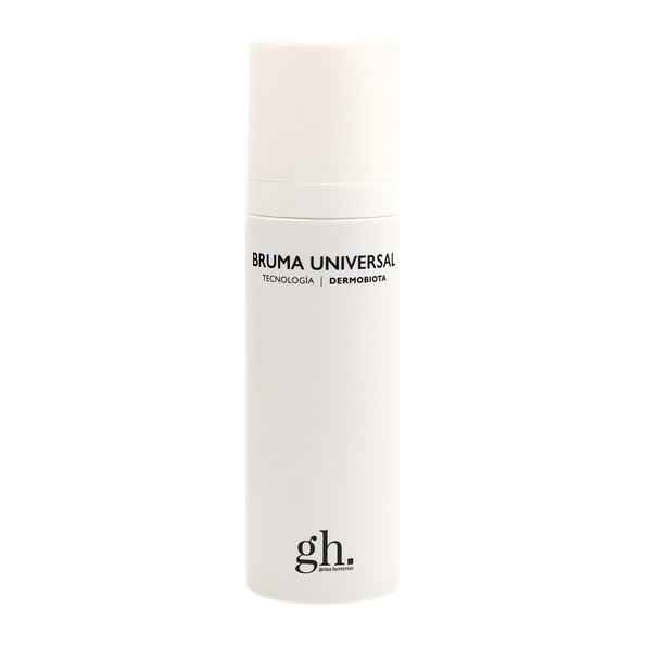 GH Gema Herrerías Bruma Universal es un tratamiento sensorial diario en formato spray pensado para calmar, refrescar y proteger las pieles más sensibles, reactivas o dañadas. Su fórmula avanzada combina tecnologías prebióticas y postbióticas (Lactobacillus ferment lysate y complejo Triplobiome™) que ayudan a restablecer el equilibrio de la dermobiota, reforzando la función barrera de la piel y reduciendo síntomas como rojeces, tirantez o sequedad causada por agresiones externas o tratamientos dermatológicos.