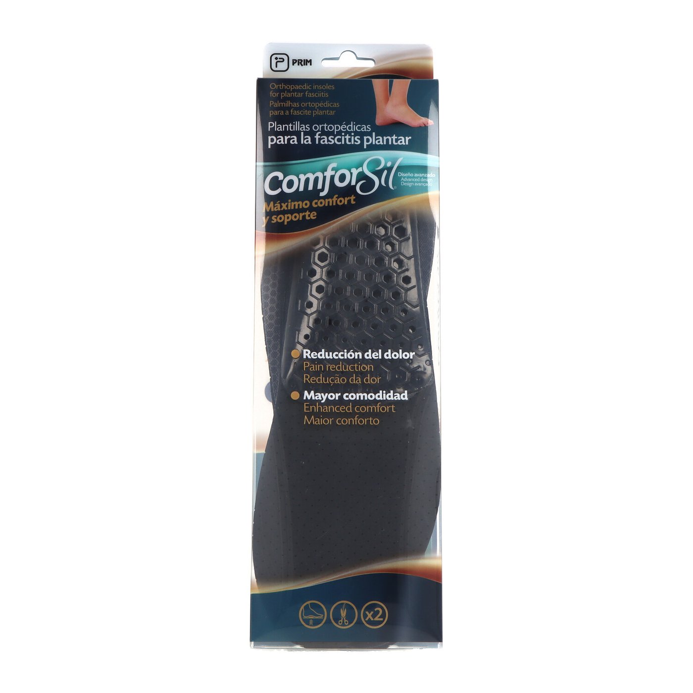 Plantilla ortopédica talla grande de Prim para aliviar fascitis plantar, con talonera acolchada y soporte del arco que reduce la presión y proporciona confort al caminar.
