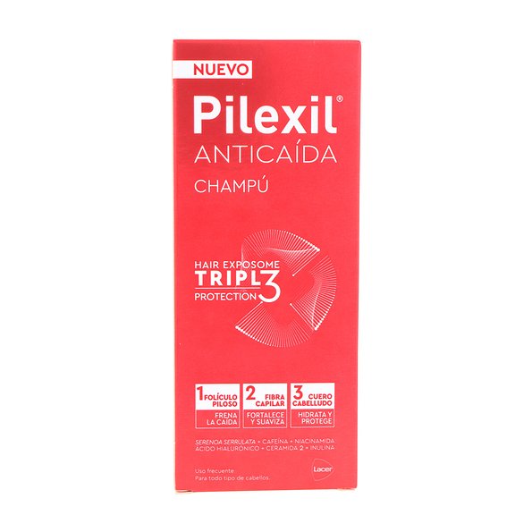 Champú anticaída refuerzo triple con Serenoa serrulata, Zinc‑PCA y vitaminas; estimula el crecimiento, reduce la caída y aporta nutrición, ideal para uso intensivo.
