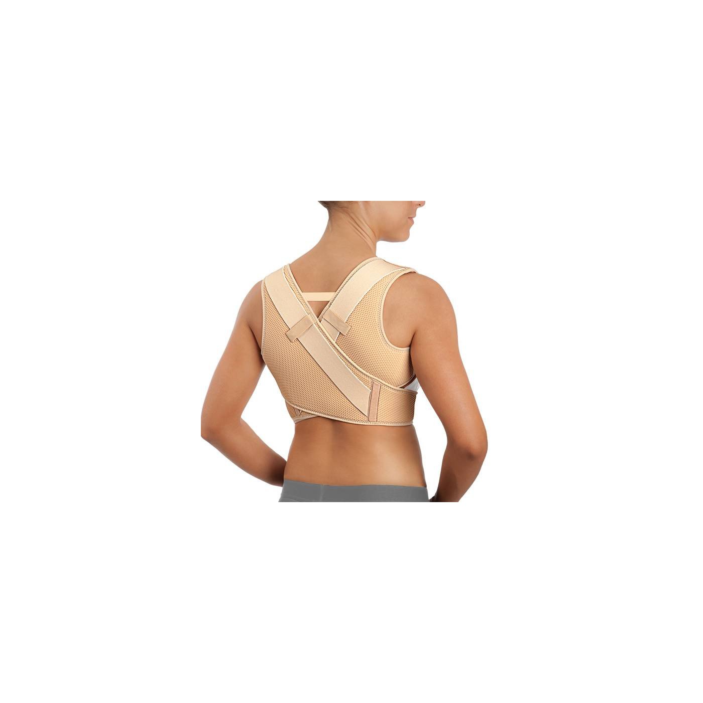 - Bandas: Dos bandas cruzadas en la espalda para retropulsión de hombros.