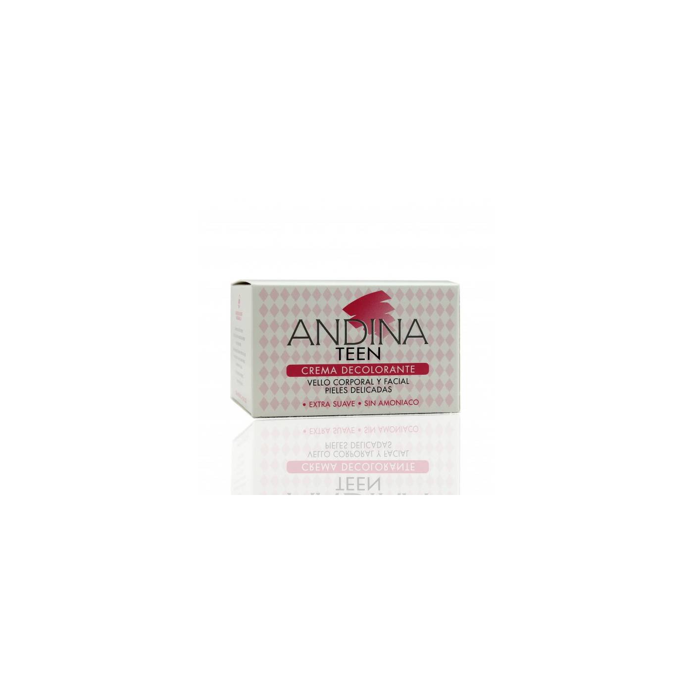Crema decolorante de alta calidad ANDINA TEEN de 30 ml, sin amoniaco, especial para piel joven y sensible. Transforma el vello oscuro en rubio en solo 10-15 minutos.