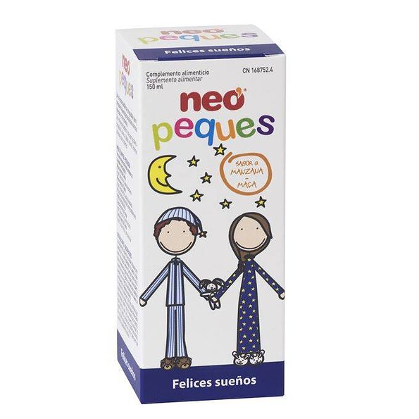 Neo Peques Felices Sueños es un complemento alimenticio a base de triptófano, extractos de plantas relajantes, Magnesio y Vitamina B6, que favorece un descanso reparador. Con agradable sabor a manzana. No recomendado durante el embarazo o lactancia.