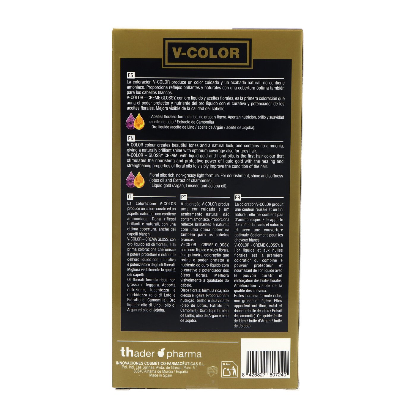 Th V‑Color N° 723 Rubio Medio Perla Dorado (ref. 169822) es una coloración permanente sin amoníaco que ofrece un tono rubio medio con reflejos perla dorado, cobertura total de canas y acabado brillante y natural.