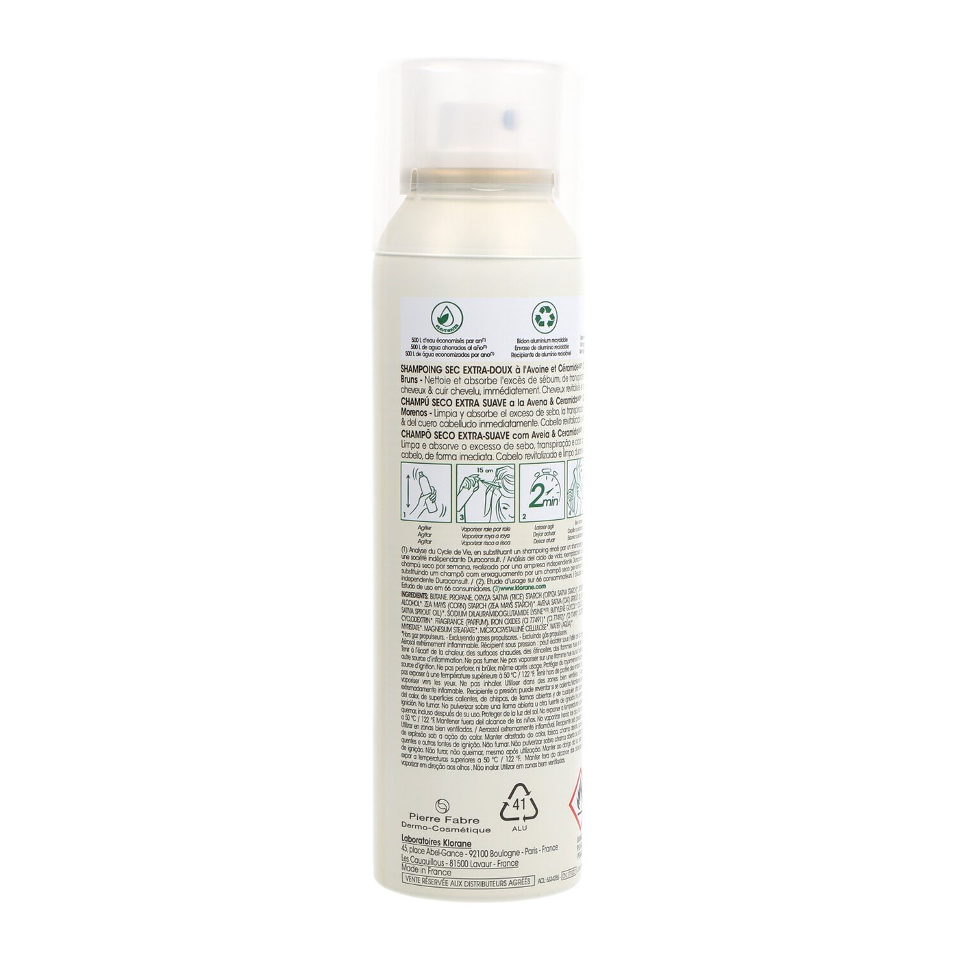 Champú seco Klorane Avena Color Natural, ideal para mantener el cabello limpio y fresco entre lavados. Su fórmula única con leche de avena y polvos absorbentes deja el cabello suave y protegido.