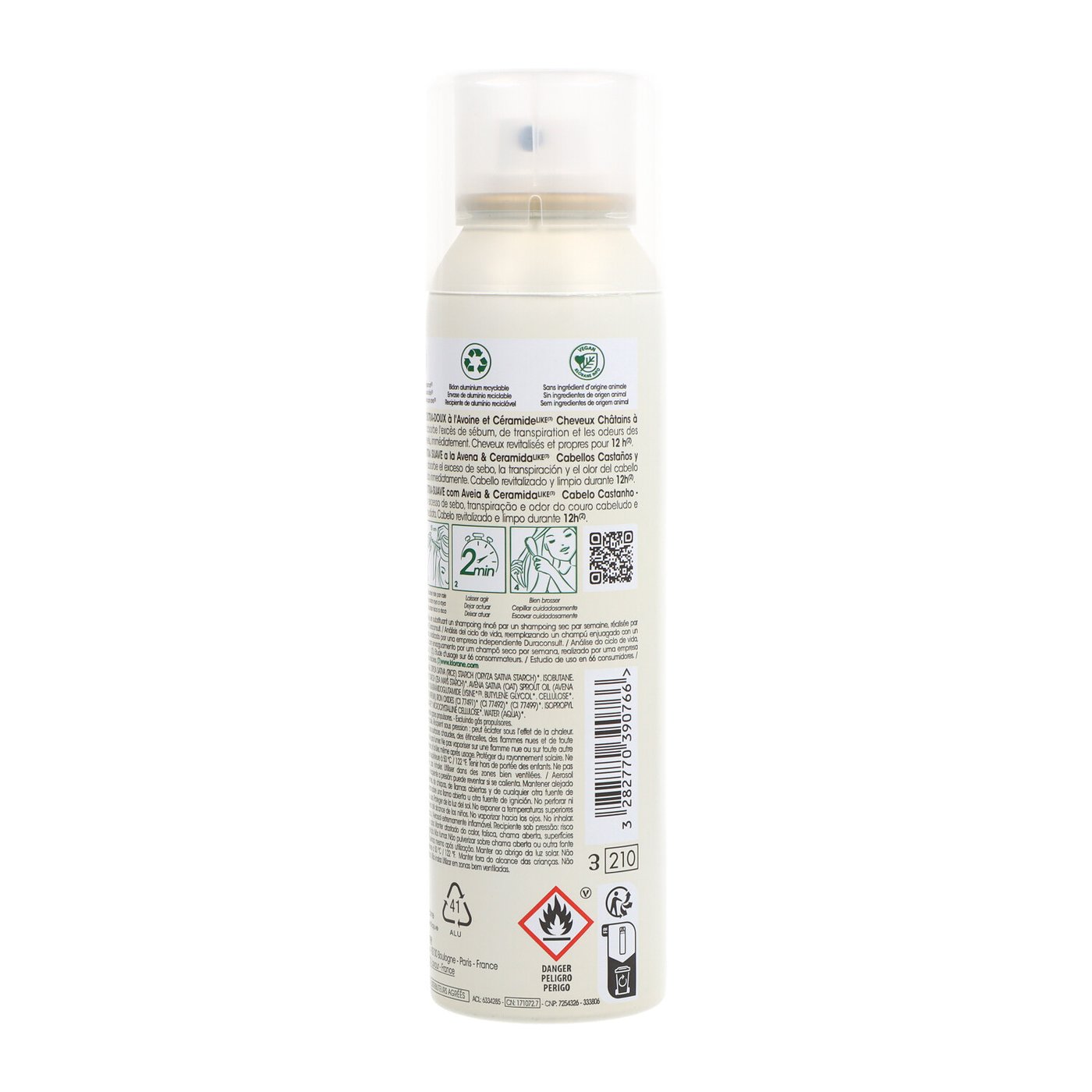 La fórmula de este champú seco contiene leche de avena con propiedades suavizantes y protectoras, además de polvos micronizados de alto poder absorbente.