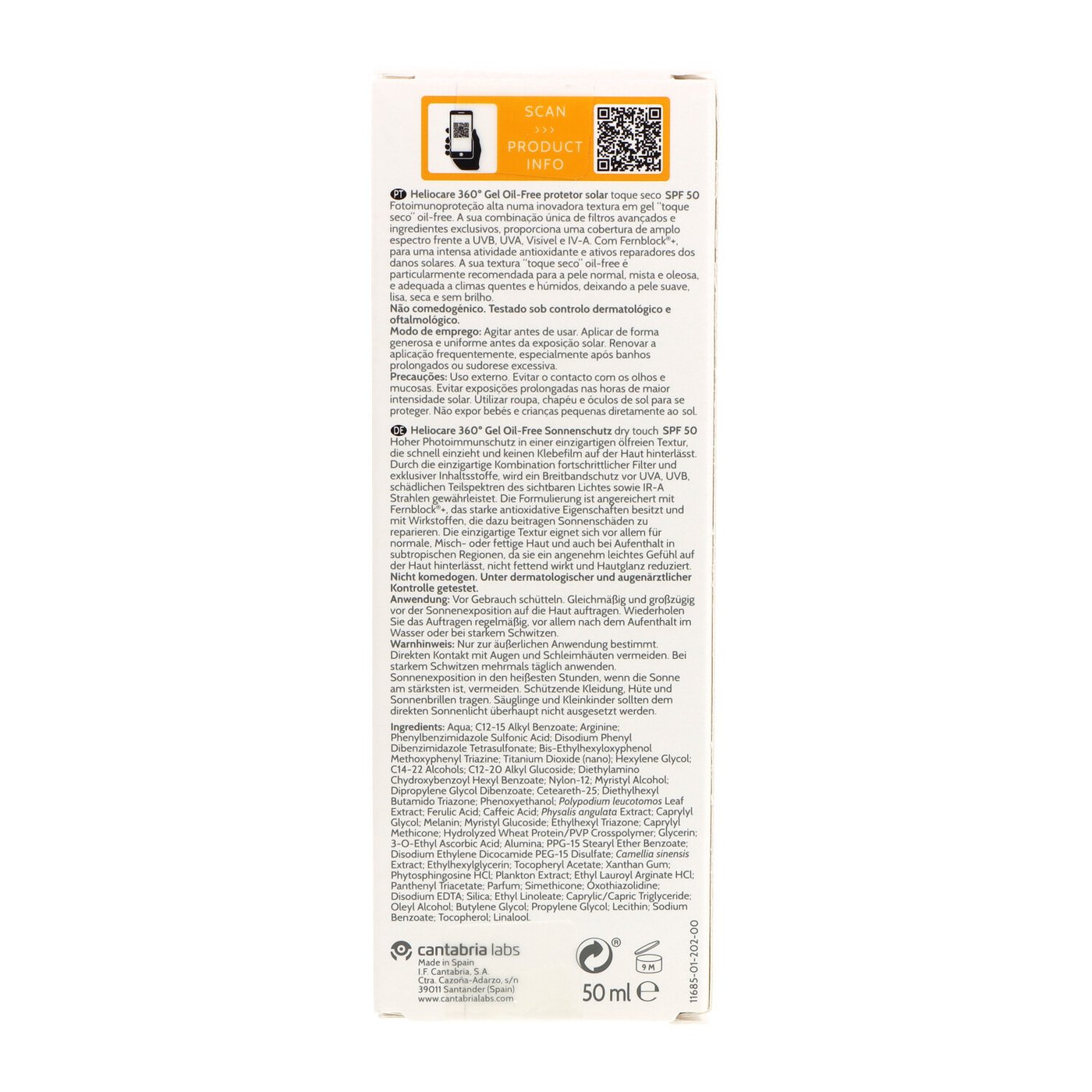 Protege tu piel grasa o con tendencia acneica con Fotoprot Heliocare 360 Gel Oil Free SPF 50+ 50 ml. Su fórmula no comedogénica deja la piel suave y sin brillos, ofreciendo una protección completa contra las radiaciones solares.COMPOSICIÓN DEL PRODUCTO