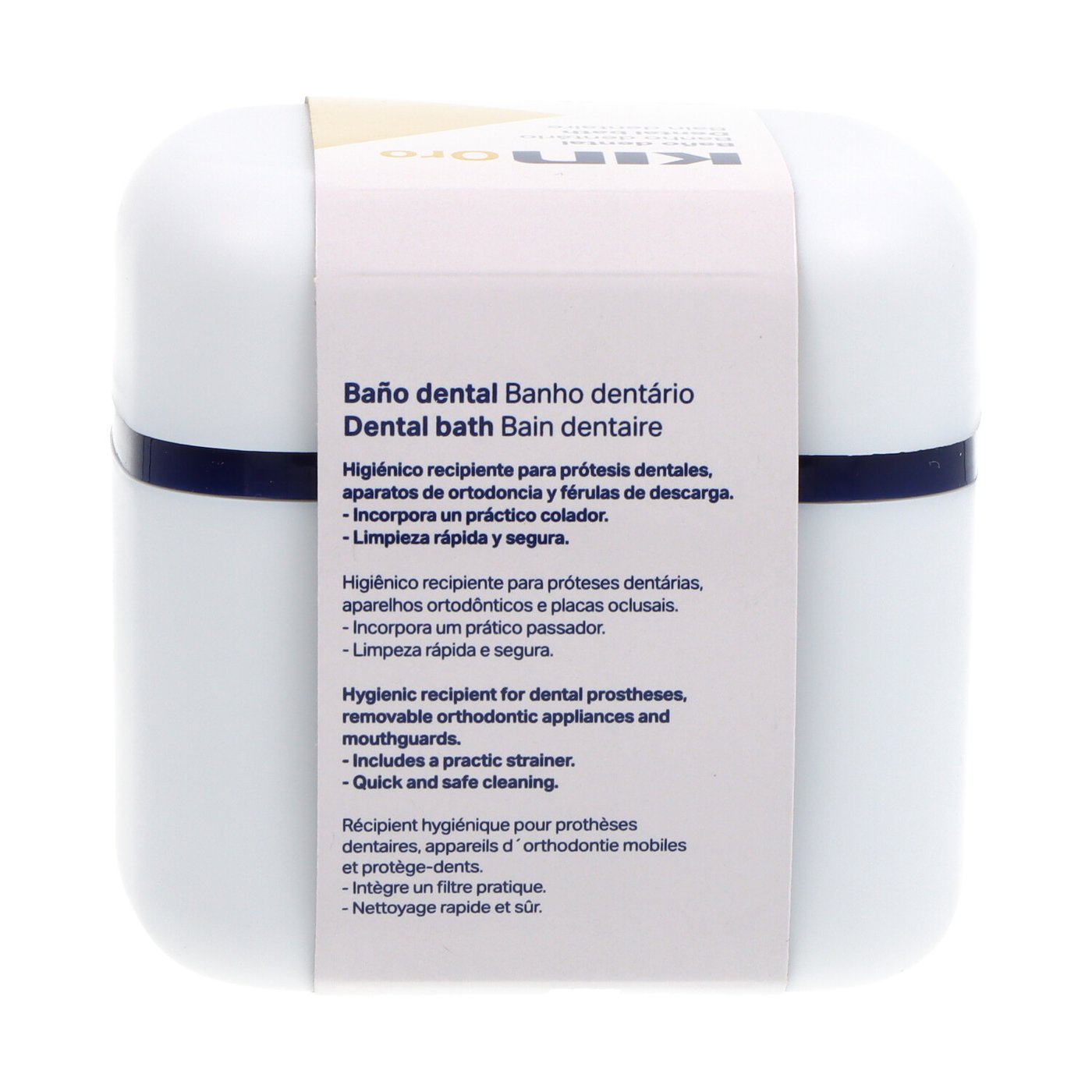 Baño para prótesis dentales Kin Oro Recipiente 1 Ud, especialmente formulado para cubrir las necesidades bucodentales en la tercera edad, garantizando una limpieza efectiva y segura de las prótesis.COMPOSICIÓN DEL PRODUCTO
