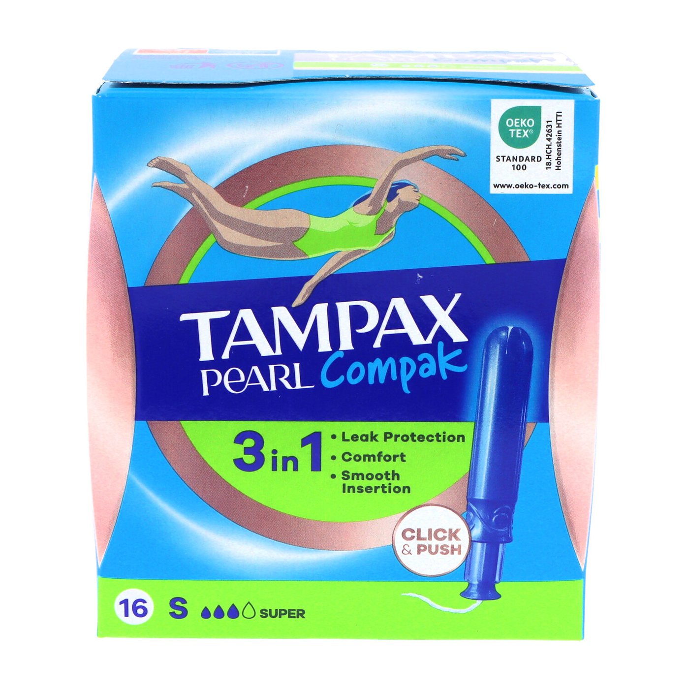 Tampax Compak Pearl Super son tampones compactos con aplicador Pearl, ofrecen protección extraordinaria durante la menstruación.