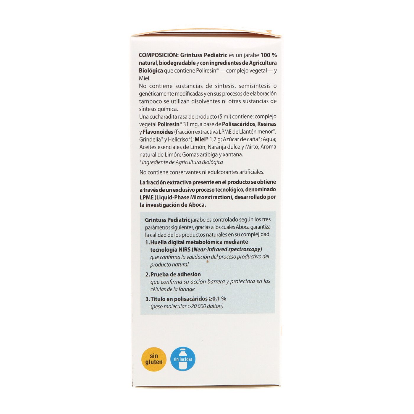 Grintuss Pediatric Jarabe es un producto 100% natural diseñado para tratar la tos seca y productiva en niños a partir de 1 año. Su fórmula a base de miel y el complejo vegetal Poliresin® crea una barrera protectora en la mucosa respiratoria, aliviando la irritación y facilitando la eliminación del moco. Además, su agradable sabor a miel lo hace ideal para los más pequeños.