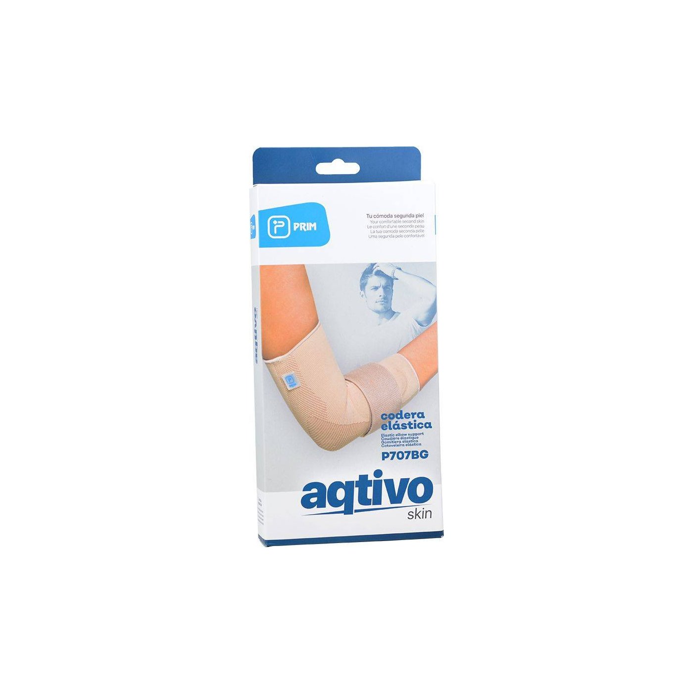 Codera Elastica Prim Aqtivo Skin en talla L, diseñada para proporcionar alivio y soporte al codo, mejorando la movilidad y reduciendo molestias.COMPOSICIÓN DEL PRODUCTO