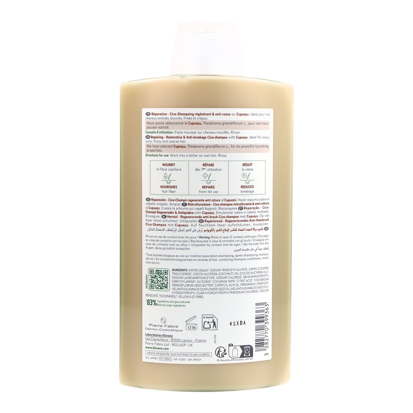 Champú con Manteca de Cupuaçu de Klorane, ideal para nutrir e hidratar el cabello seco.COMPOSICIÓN DEL PRODUCTO