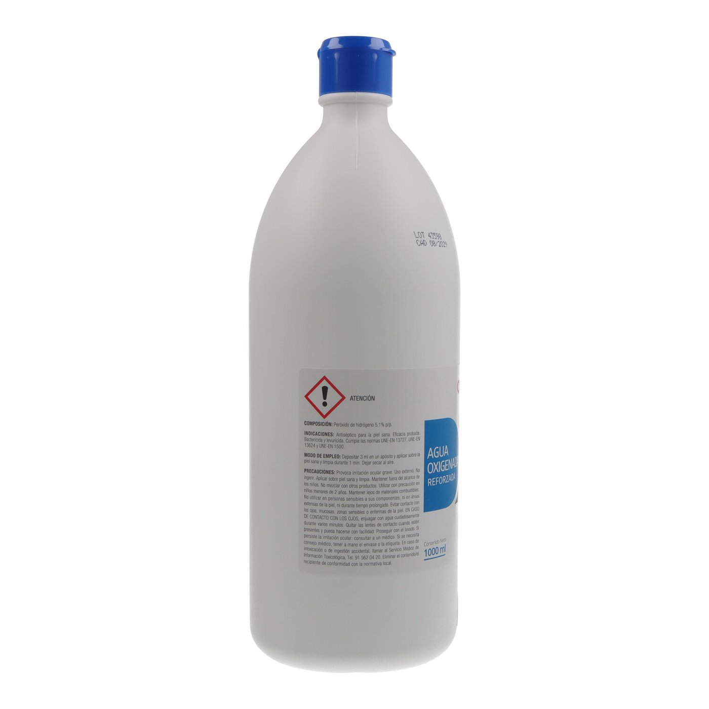 Antiséptico Aposan Agua Oxigenada Reforzada 1000 ml, con acción bactericida y levuricida para piel sana, cumpliendo estándares UNE-EN 13727, UNE-EN 13624 y UNE-EN 1500.COMPOSICIÓN DEL PRODUCTO