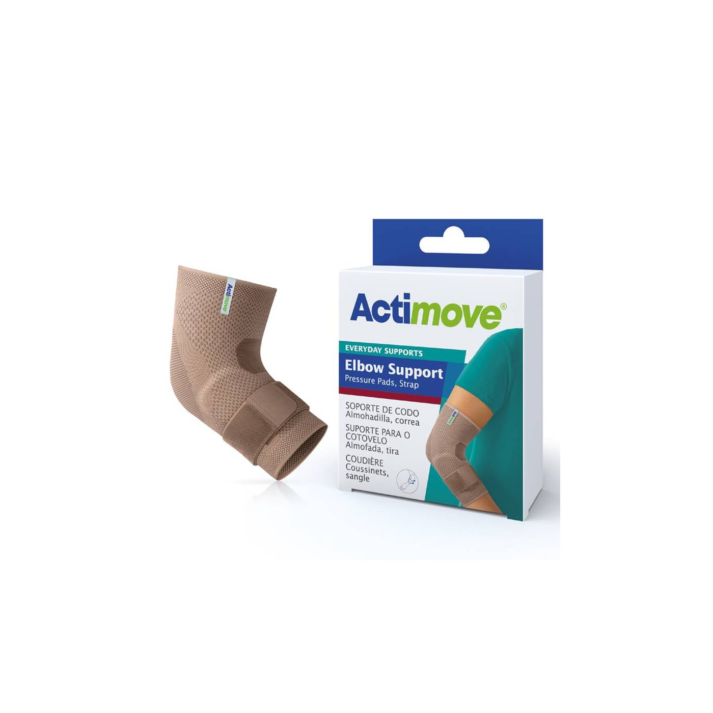 Codera elástica con almohadilla y banda, con un tejido circular que proporciona una compresión firme para ayudar a controlar el dolor relacionado a patologías de codo.