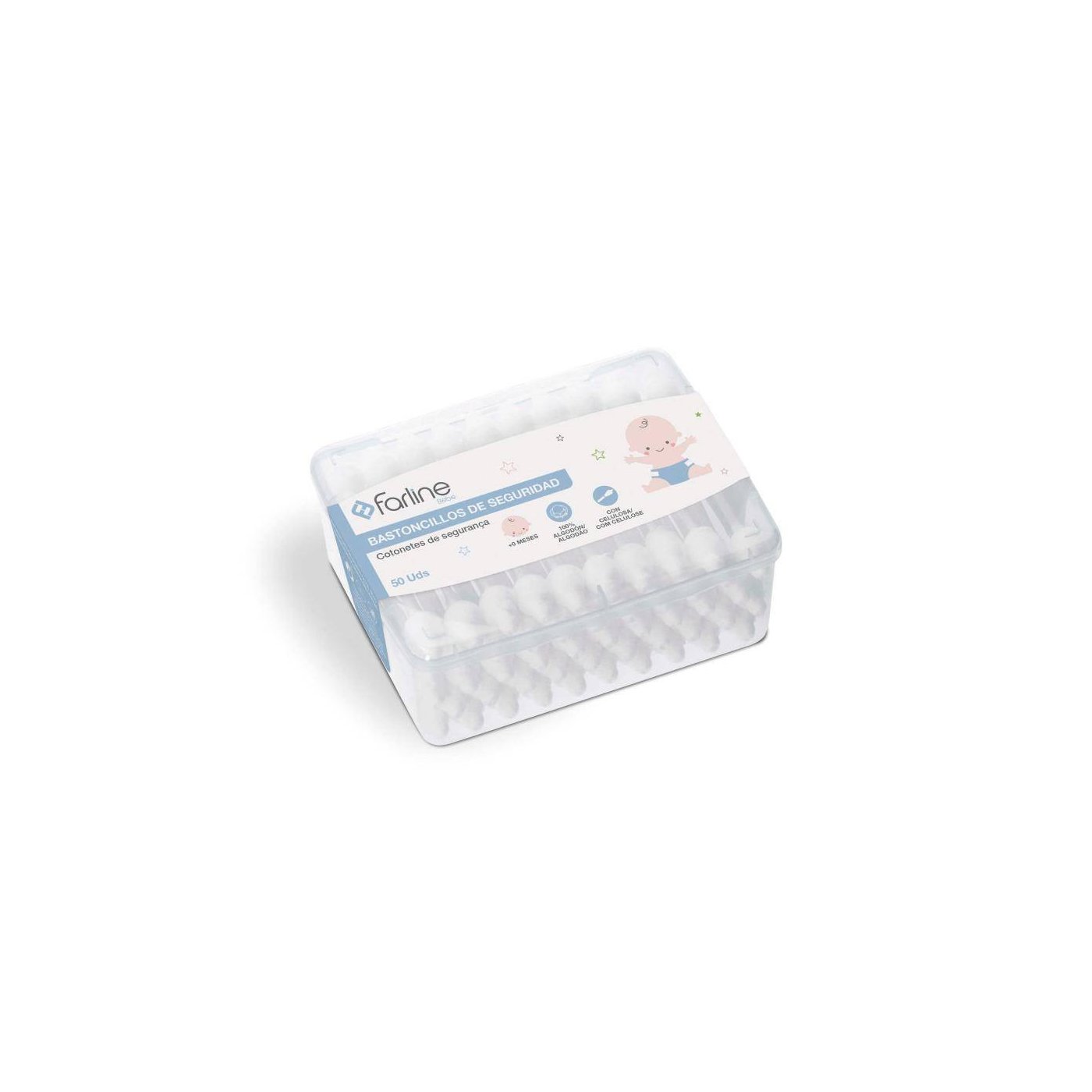Bastoncillos de seguridad para bebés de Farline, fabricados con 100% algodón. Pack de 50 unidades.