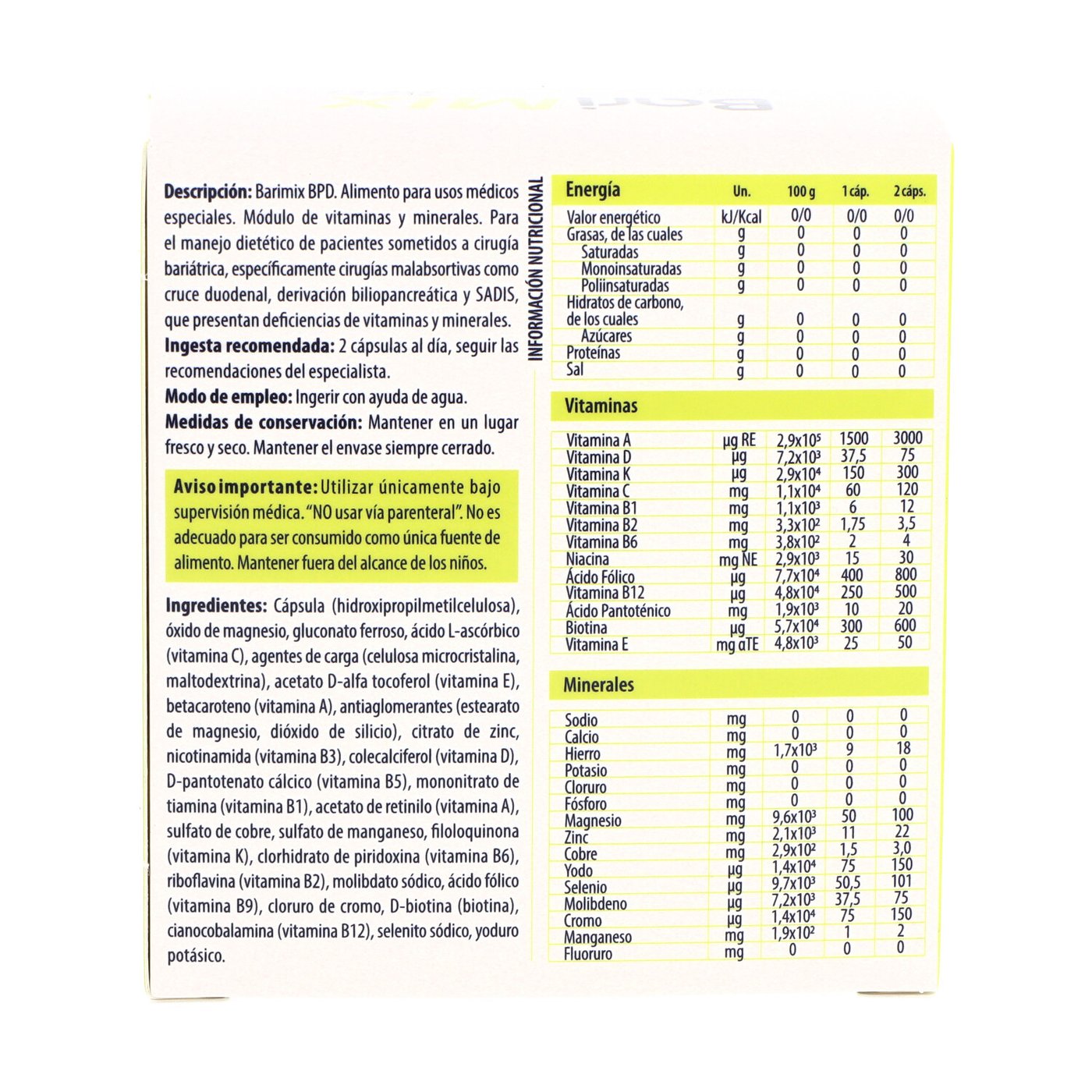 Barimix Bpd es un módulo de vitaminas y minerales recomendado como Alimento para Usos Médicos Especiales, especialmente diseñado para el manejo dietético después de cirugía bariátrica. Indicado a partir de los 18 años para cubrir las necesidades nutricionales específicas en esta etapa postquirúrgica.COMPOSICIÓN DEL PRODUCTO