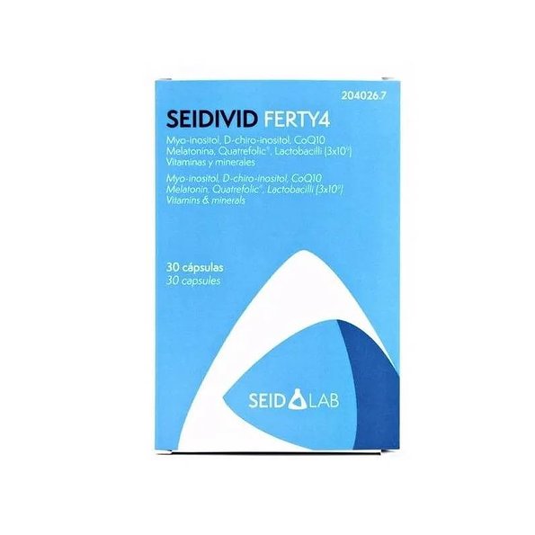 Mio-Inositol, Microcrystalline cellulose, Coenzyme Q10, Iron sulphate, Zinc sulfate, Tocopherol, D-chiro-inositol, Magnesium salts of fatty acids, Silicon dioxide, Lactobacillus crispatus, Lactobacillus gasseri, Pyridoxine hydrochloride, Melatonin, 6S-5-Methyltetrahydrofolate glucosamine, Potassium iodide, Colecalciferol, Cyanocobalamin, E464, E171