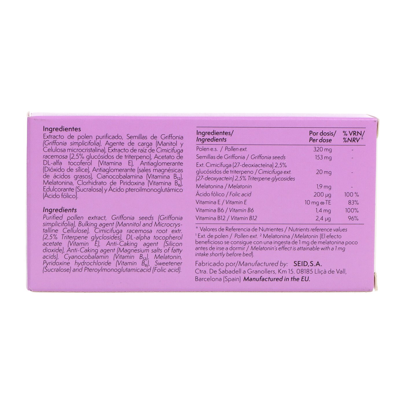 Suplemento para aliviar los síntomas de la menopausia. Con ingredientes que ayudan a reducir sofocos, sudoración nocturna y mejorar el estado de ánimo.