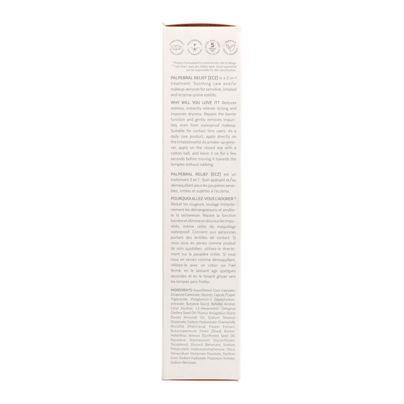 Desmaquillante y tratamiento específico para párpados sensibles o con tendencia al eczema. Calma, hidrata y elimina el maquillaje resistente sin irritar.