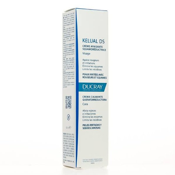 La crema KELUAL DS queratorreductora y calmante mitiga el enrojecimiento e irritación cutánea, remueve las escamas (delgadas capas de piel que se desprenden) y previene eficazmente su reaparición. Diseñada específicamente para calmar la piel irritada, esta crema para tratamiento preventivo de recidivas puede emplearse tanto en la fase inicial como en la de mantenimiento. Es ideal para uso facial y es bien tolerada por los ojos. Posee una fórmula ligera, no aceitosa y no pegajosa.
