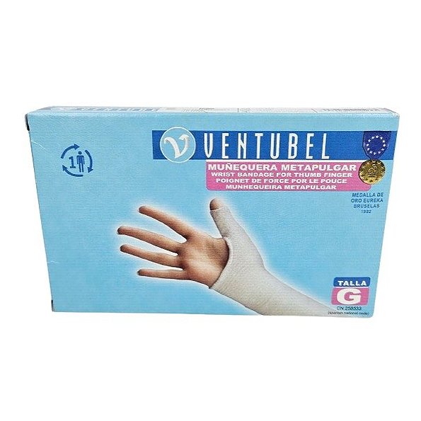 Muñequera Ventubel Metapulgar T Gde: Ideal para dolores postraumáticos, esguinces, rizartrosis y tendinitis. Ajustable, previene lesiones en actividades deportivas y laborales.