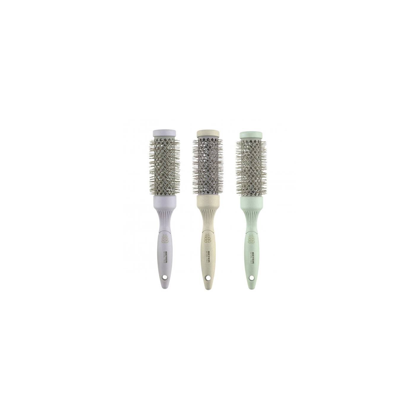 Cepillo térmico de cerámica 32 mm con barril de aluminio recubierto, fabricado con fibras de trigo en su mango para minimizar plásticos y distribuir el calor de forma homogénea.