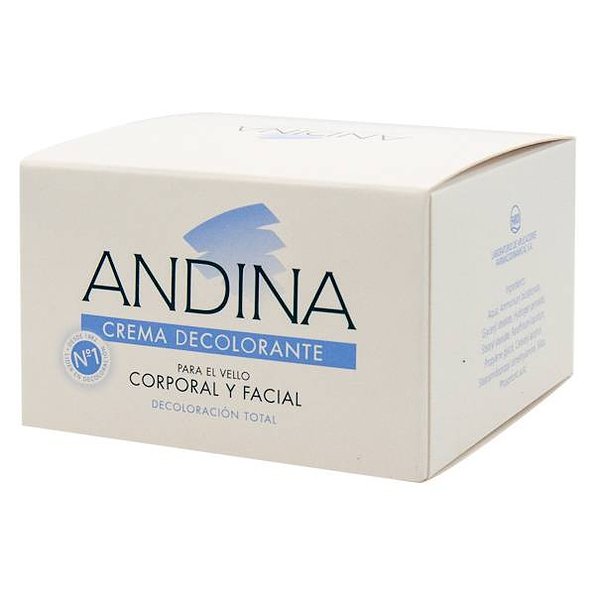 ANDINA es una crema decolorante de alta calidad que transforma el vello oscuro en rubio en pocos minutos. Deja la piel suave y el vello invisible y suave. Viene con tarro de crema, tubo de polvo y accesorios para preparar la mezcla decolorante.COMPOSICIÓN DEL PRODUCTO