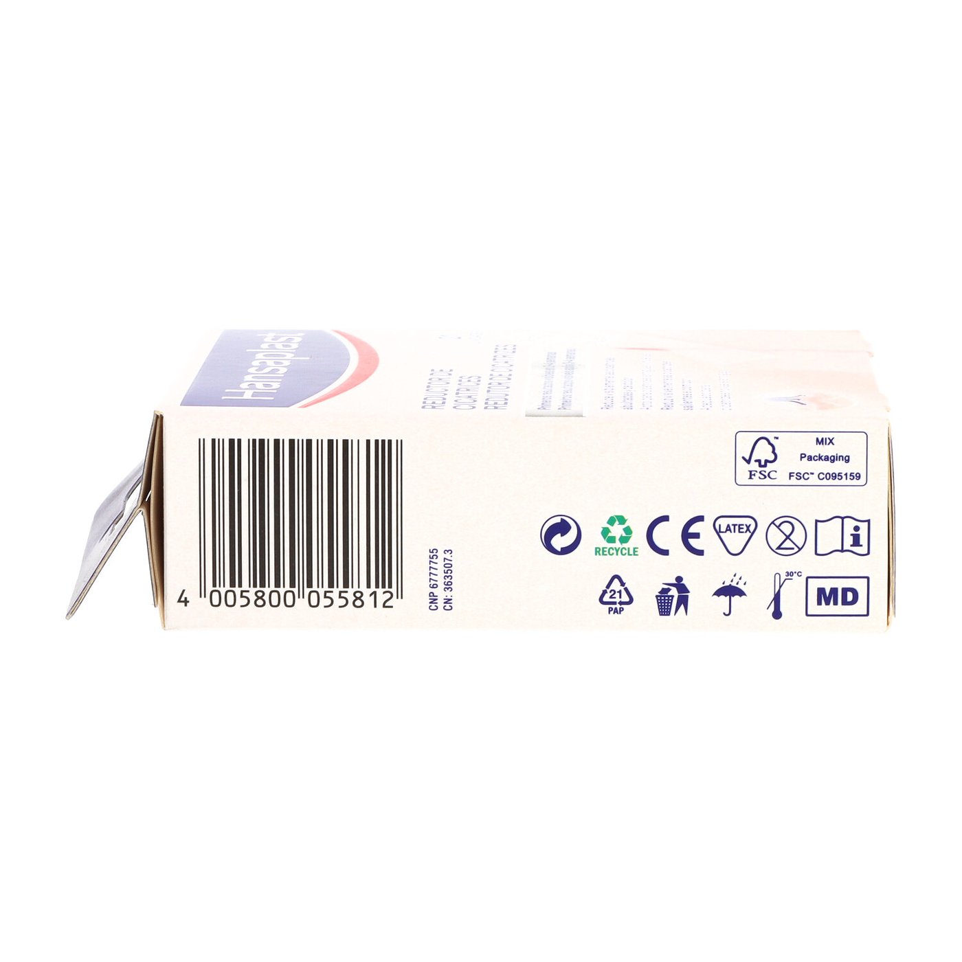 Apósito Hansaplast para reducción de cicatrices. No apto para heridas abiertas o quemaduras, ni en niños menores de 3 años. Sin efectos secundarios registrados. Duración del tratamiento aproximadamente 8 semanas.