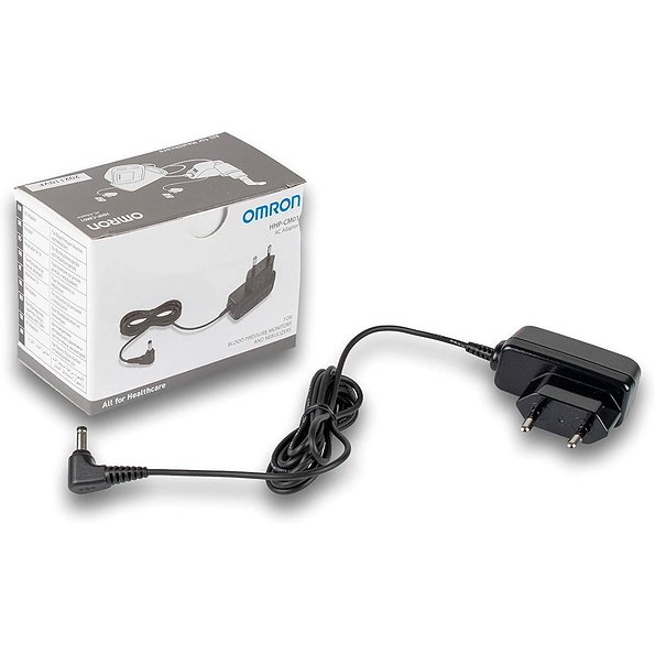 Omron Adaptador HHP‑CM01, entrada AC 100‑240 V y salida DC 6 V/700 mA (ref. 005597). Fuente oficial para modelos de tensiómetros y nebulizadores compatibles Omron.