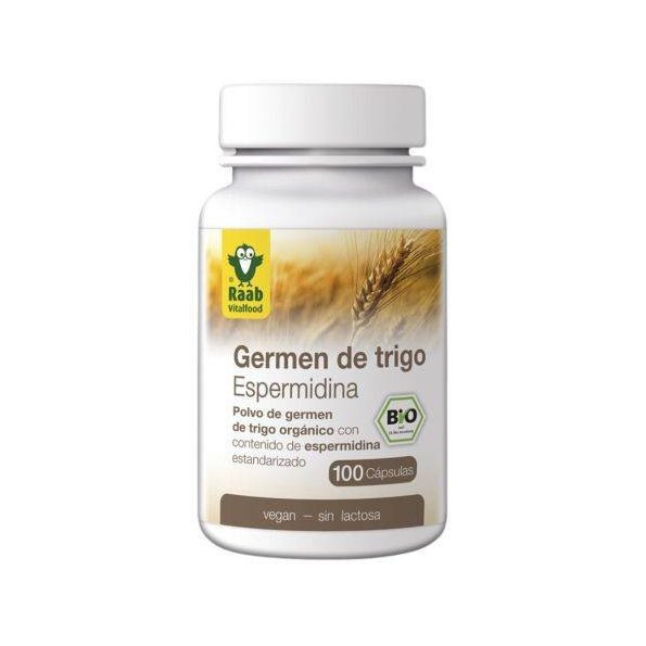Espermidina Germen De Trigo Vegano Sin Lactosa 100 Capsulas Raab: Suplemento concentrado de espermidina natural, ideal para proteger contra el envejecimiento prematuro. Producto vegano y sin lactosa.