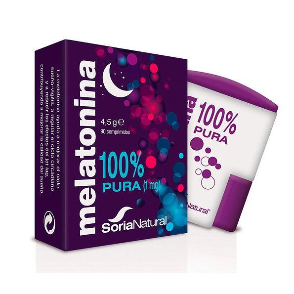 A Melatonina 100% Pura da Soria Natural é um suplemento alimentar em comprimidos contendo 1 mg de melatonina pura por comprimido, em uma embalagem com 90 unidades (CN 210958). É especialmente formulado para: