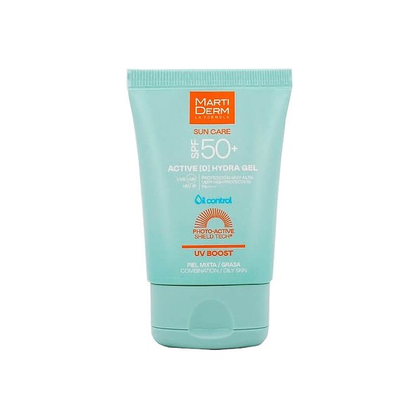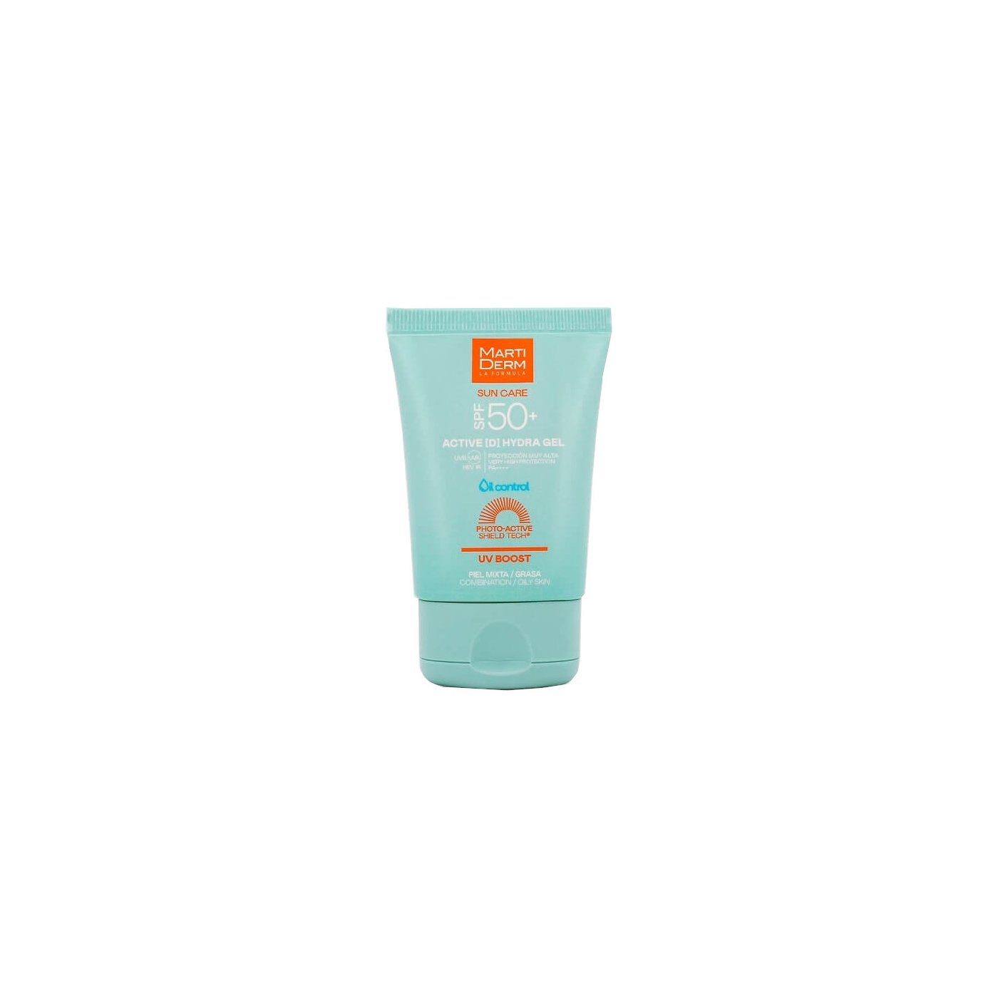 MartiDerm Sun Care Active [D] Hydra Gel FPS50+ é um protetor solar facial com textura em gel ultraleve, especialmente formulado para peles mistas e oleosas. Oferece altíssima proteção solar contra a radiação UVA, UVB, infravermelha e luz azul, graças à sua avançada tecnologia Photo-Active Shield Tech®, que aumenta a eficácia do FPS quando exposto à radiação UV.