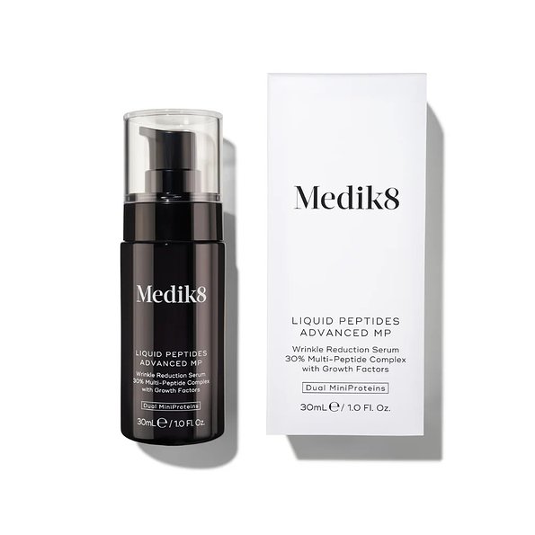 Medik8 Liquid Peptides Advanced é um poderoso sérum antienvelhecimento formulado com tecnologia avançada de peptídeos que atua eficazmente nos sinais de envelhecimento. Graças ao seu complexo de 13 peptídeos de última geração e ao inovador sistema de entrega MiniProteins™, este tratamento penetra nas camadas mais profundas da pele para estimular a produção natural de colágeno e elastina.