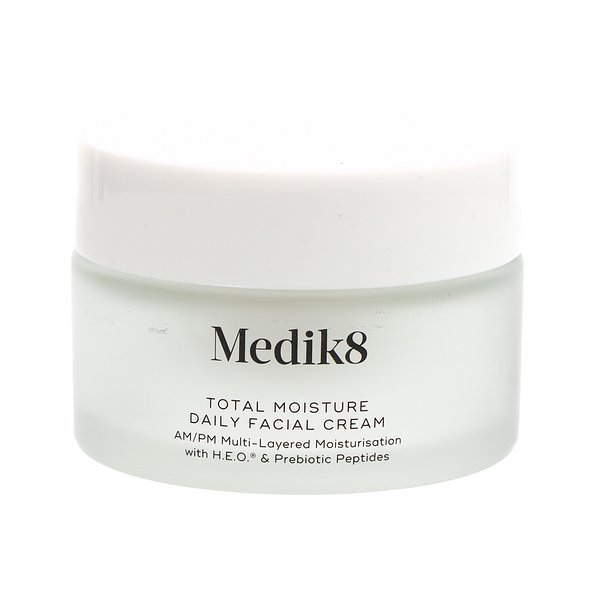 O creme facial diário Medik8 Total Moisture é um hidratante diário desenvolvido para proporcionar hidratação profunda e duradoura, ao mesmo tempo que fortalece a barreira da pele e equilibra o microbioma da pele. Sua fórmula leve, porém intensamente nutritiva, é adequada para todos os tipos de pele, incluindo as sensíveis.