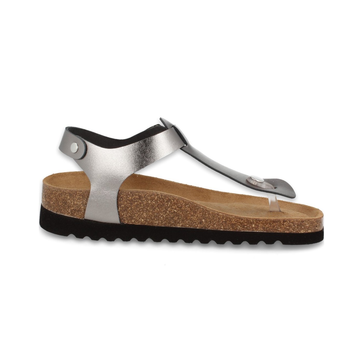 Sandália ortopédica moderna na cor aço, confeccionada em couro napa com palmilha anatômica acolchoada. Ideal para pés delicados que exigem conforto e suporte o dia todo.