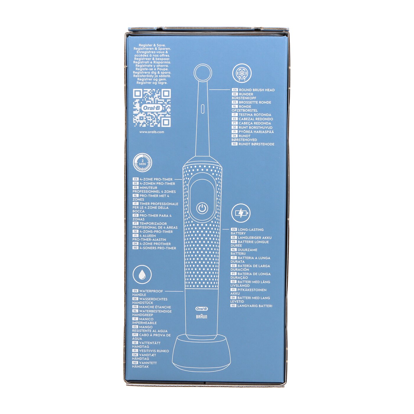 A escova de dentes elétrica Oral-B Vitality 100 CrossAction Blue oferece limpeza superior às escovas de dentes manuais tradicionais. Sua tecnologia de limpeza 2D oscila e gira para remover a placa bacteriana com eficácia. Equipada com um temporizador de 2 minutos, ela ajuda você a cumprir os tempos de escovação recomendados pelo dentista. Seu design ergonômico e a cabeça arredondada da escova garantem uma experiência de escovação confortável e eficiente.