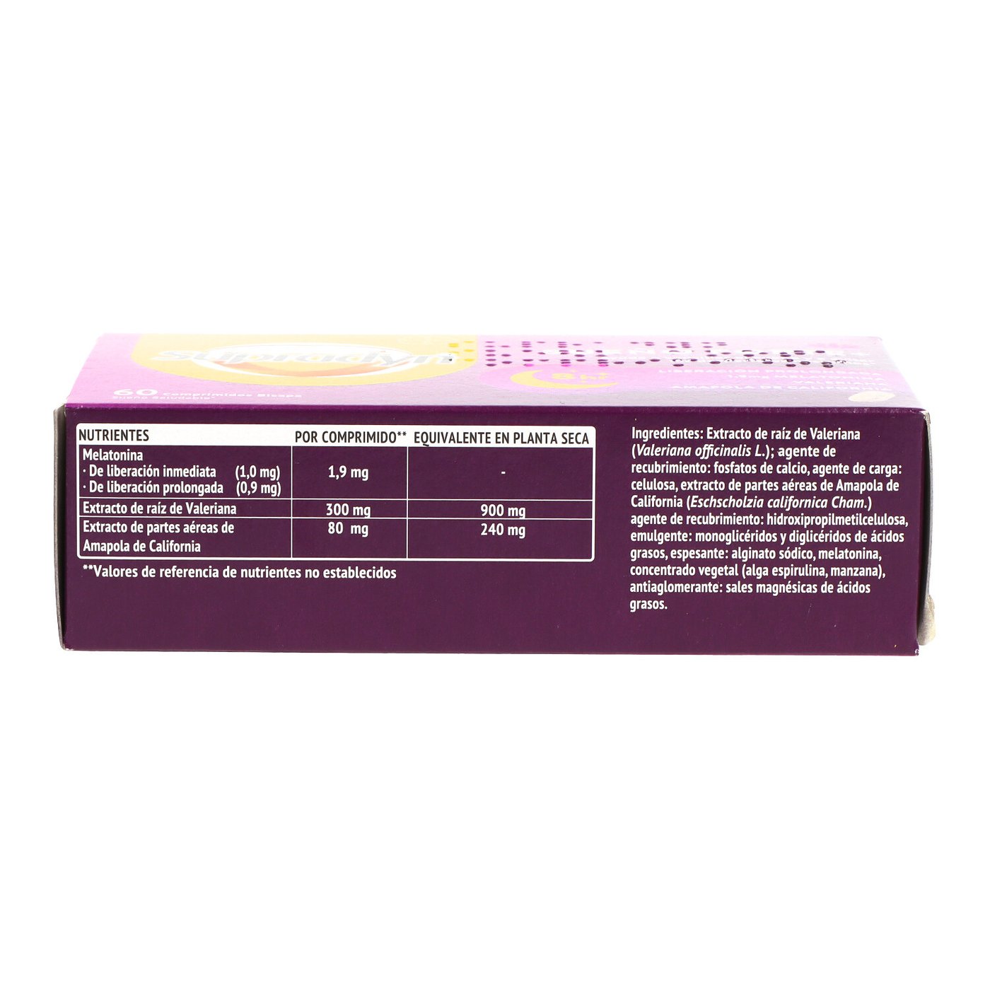 Melatonina 1 mg de liberação imediata Melatonina 0,9 mg de liberação prolongada Extrato de raiz de valeriana 300 mg Extrato de partes aéreas de papoula da Califórnia 80 mg