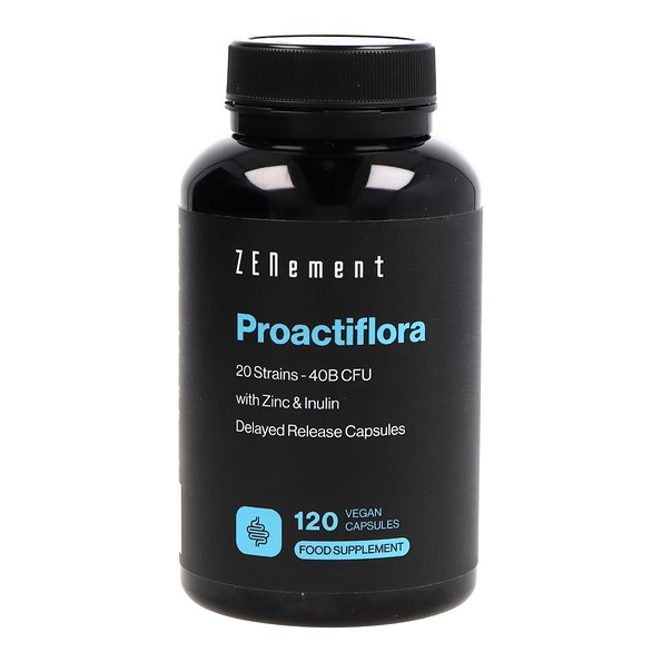 Mistura bacteriana patenteada de 19 cepas (Lactobacillus acidophilus LA85 3×10⁹ UFC, Bifidobacterium longum BL21 3×10⁹…) + inulina (prebiótico)