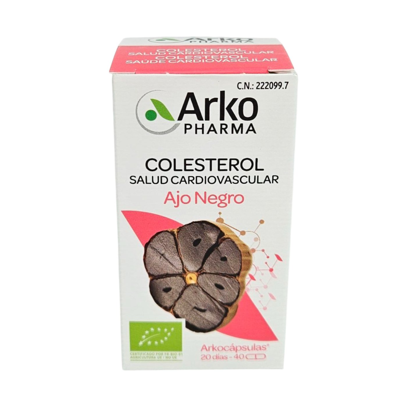 Arkocaps Black Garlic é um suplemento alimentar formulado com alho negro orgânico (Allium sativum L.) que passou por um processo de fermentação natural para potencializar suas propriedades. Esta fórmula 100% vegetal vem em cápsulas simples e é indicada para pessoas que desejam cuidar da saúde cardiovascular, manter níveis normais de colesterol e fortalecer o sistema imunológico da maneira mais natural possível. Sua composição orgânica e vegetal o torna uma opção adequada para quem busca suplementos à base de plantas provenientes da agricultura orgânica.