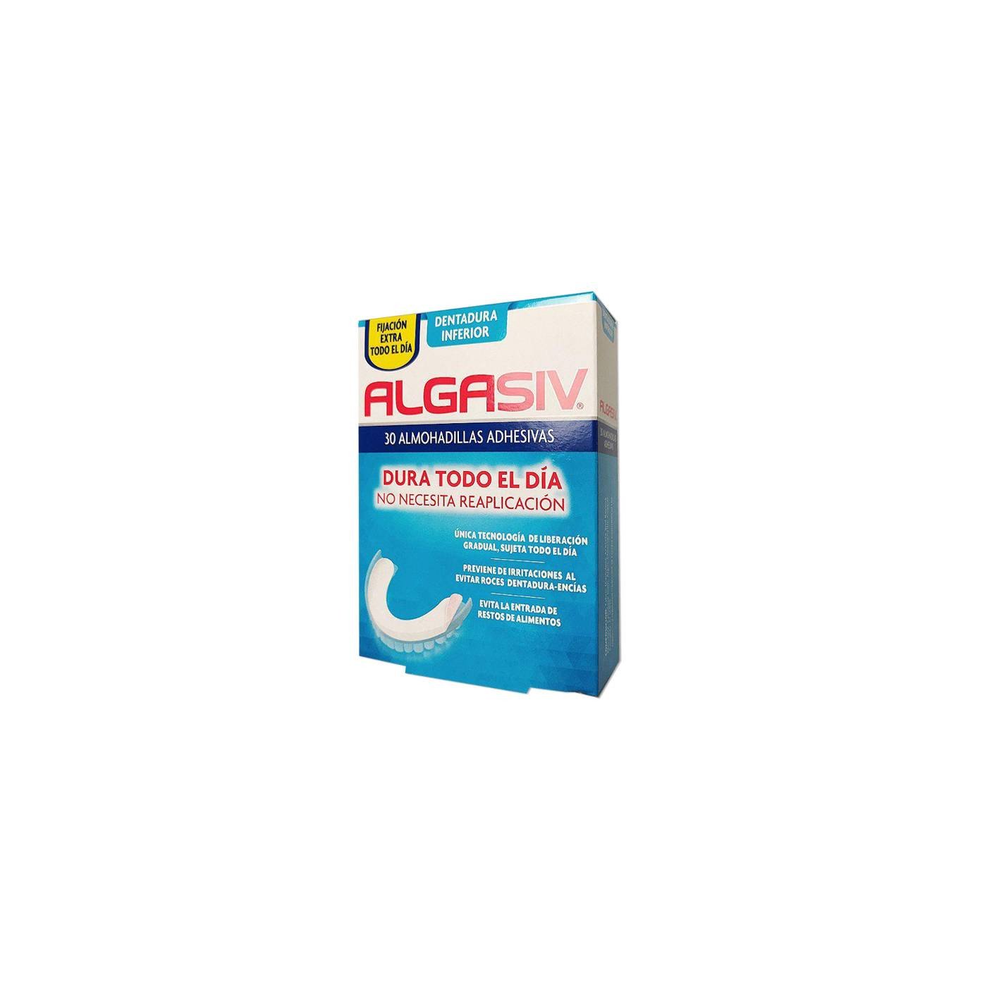 Para utilizar as almofadas inferiores Algasiv, a prótese deve primeiro ser limpa e seca. Em seguida, um absorvente é retirado da embalagem e aplicado na prótese na parte que entra em contato com a gengiva. Quando posicionada corretamente, insira a dentadura na boca e ajuste até ficar confortável. As almofadas podem ser usadas com próteses totais e parciais.